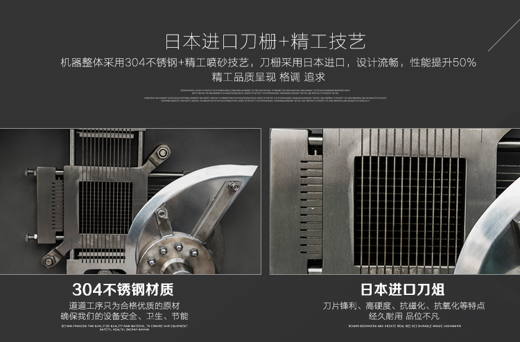 本設備采用全304不銹鋼構架,高級噴砂處理,激光雕刻,利用液壓推料設計,步進式進料,全自動切割,配合日本原裝進口刀具,鋒利切割,速度快,切割長度可調,寬度規格可定制,并配備安全感應雙保護設置,整體外形美觀大氣,是肉類食品加工專用切丁設備。