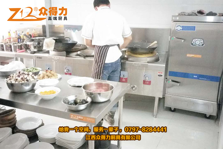 廚房一角:廚房設(shè)備由眾得力廚具供應(yīng)。